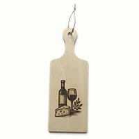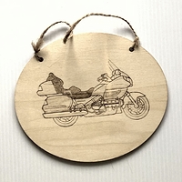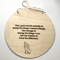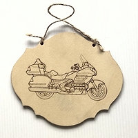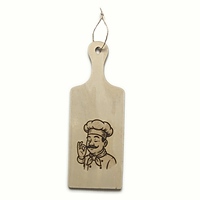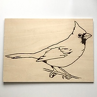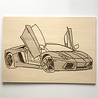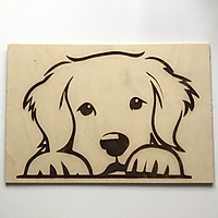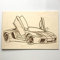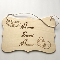 Various pictures or sayings are burned onto thin plywood sheets with a laser burner.